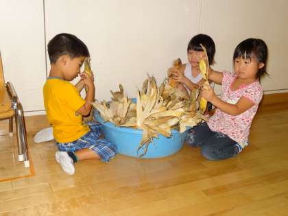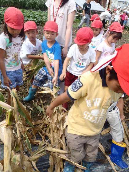 9月3日に年長組の子どもたちが西賀茂農園でポップコーンを収穫しました。