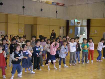 さすが,年長組の子どもたちばかりです。代わったところをちゃんと意識してすることができました。「じゃあ,23日にまた一緒に歌ったり踊ったりしようね」ということで,その後,園庭でそれぞれ遊ぶことを楽しみました。