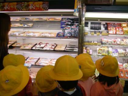 “ふ”も何とか見つかられました。難しかったのは,ワカメでした。付添いのお母さん先生も「生?乾燥?どっちかな」と考えていただいたりしたのですが,今回は,「生」で行くことにしました。お母さん先生に生ワカメの場所を教えてもらってようやく全部の具材が揃いました。