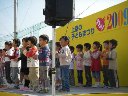 ゆり組の子どもたちが,この間集まった5つの幼稚園の子どもたちと一緒に歌ったり,ダンスを披露したりしました。