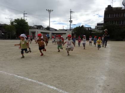 3歳児がかけっこを楽しんでいます。