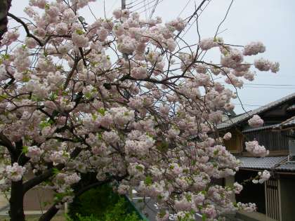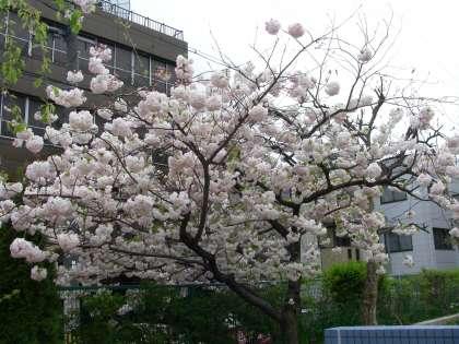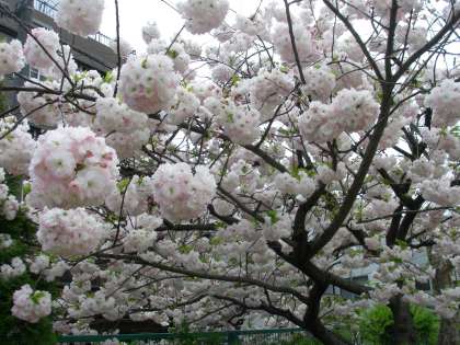 みつば幼稚園ご自慢の八重桜が今,満開です。花の鞠のように真ん丸く,かわいい花を咲かせています。