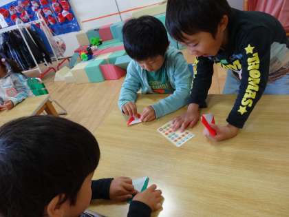 さつまいもを入れる入れ物も、折り紙でつくりました。