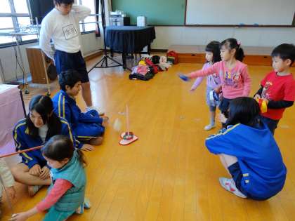 中学生のお兄さんお姉さんは前向きにあたたかく子どもたちにかかわってくださいました。時折、童心にかえったような笑顔も見せてくれ、子どもたちと一緒に本気で遊んでくださいました。