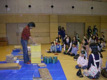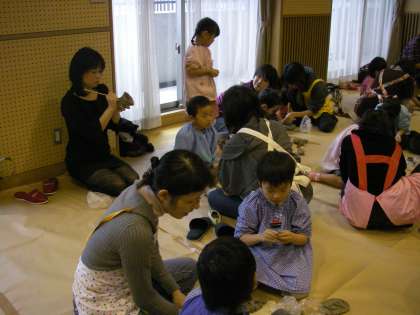 講師の先生からやり方を教えてもらい,親子で陶器作りが始まりました。お家で何を作ろうかと相談し,親子で力を合わせ一つのものを作っている様子やお母さんはお母さんで,子どもは子どもでそれぞれに作りたいものを作っている姿など,様々な様子でしたが,とても真剣でまたとても楽しそうに作っていらっしゃる様子が見られよかったなと思いました。