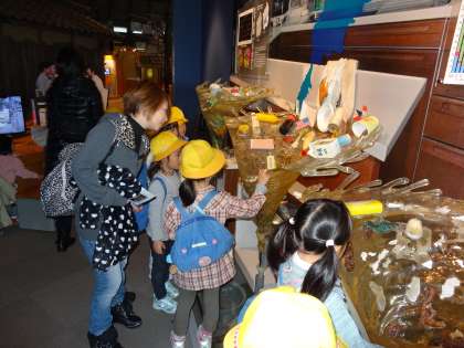 琵琶湖の成り立ちや大昔にいた生き物、琵琶湖の自然や人々の生活とのつながりなどいろいろな展示に子どもたちもわくわくです。