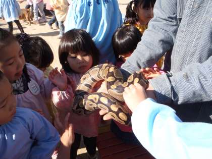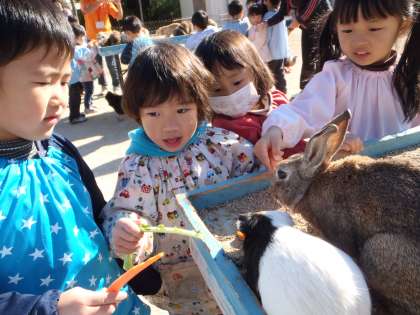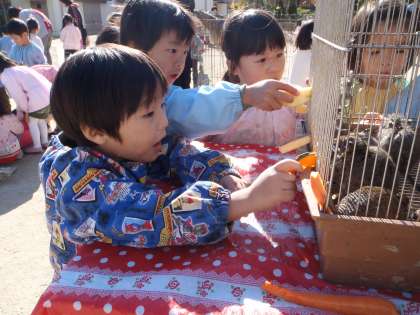 待賢幼稚園のお友達と一緒に、たくさんの動物とふれあったり、えさを食べさせたりしました。