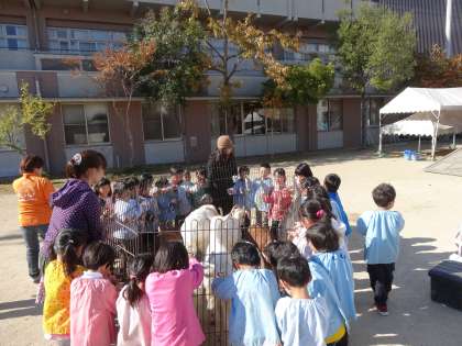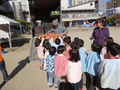 5歳児が、一日動物園を楽しんだ後、動物園のおじさんに教えていただきながら、動物たちをお家(運搬用ケース)やトラックに戻すお手伝いをしました。