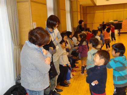 そのあと、おうちの人と一緒にふれあい遊びや、折り紙など参観していただきました。