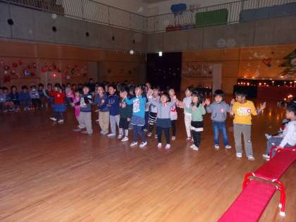 今日は幼稚園の子どもがみんな集まって、楽しい集いを行いました。