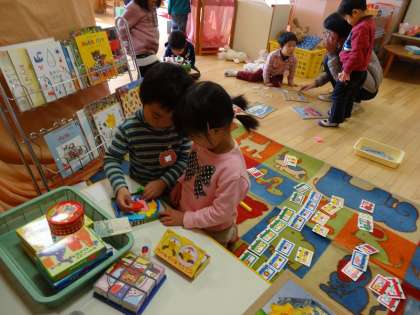 保育室にカルタなどお正月遊びの用意がしてあります。