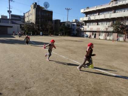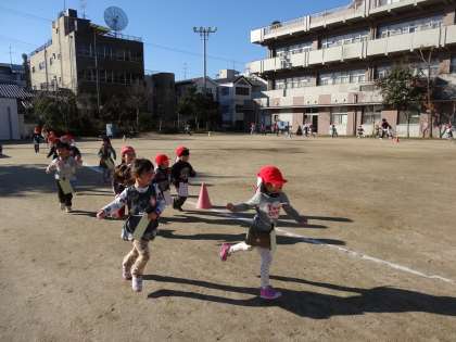 みつば幼稚園では今日15日から、マラソンごっこを始めました。