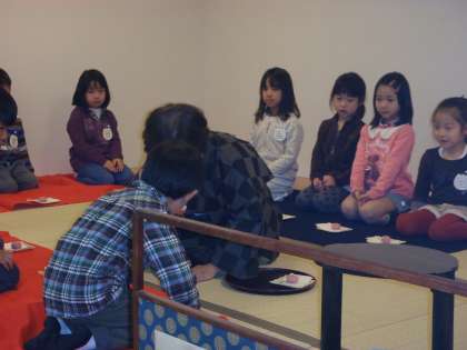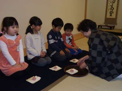 お菓子やお茶をいただく時のお辞儀や、「お先にいただきます」の挨拶、両手でお茶をいただきくことなど、人を大事に思う気持ちや礼儀を体感したと思います。