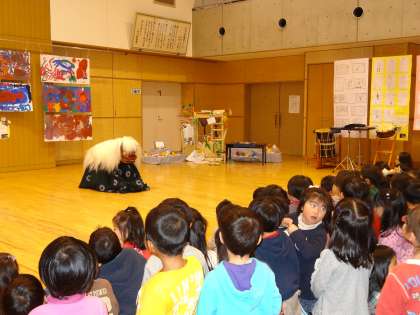 みつば幼稚園で「和太鼓と獅子舞のミニライブ」が行われました。