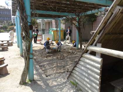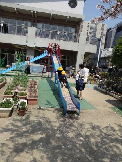入園式や記念写真撮影の後、春の暖かな日差しの中、さっそく遊び始める姿が見られました。