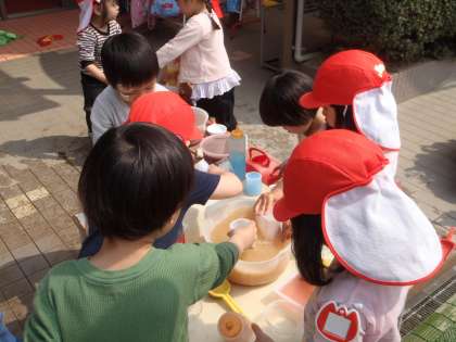 色の変化を楽しんだり,ジュース屋さんごっこをしたりしてあそんでいました。
