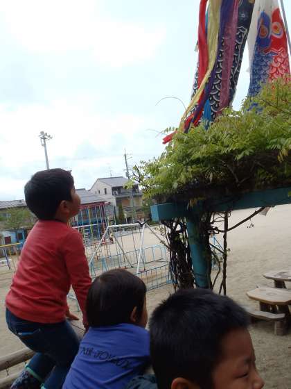 年少組の子どもたちがこいのぼりを見つけて教えてくれました。