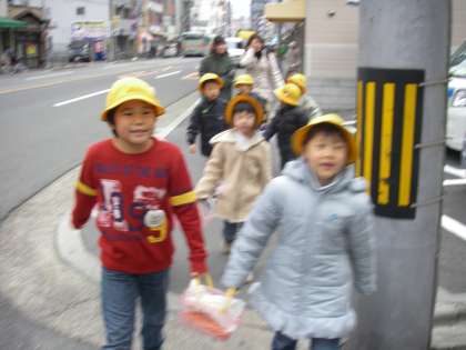 最後の仕上げは,お母さん先生にお願いしてパンやさんに行きました。「あっ。さっき買い物したお店や〜」という声が聞こえました。そうです。パン屋さんとスーパーは通りをはさんで向かい合わせです。いろんなことに気がつく子どもたちでした。