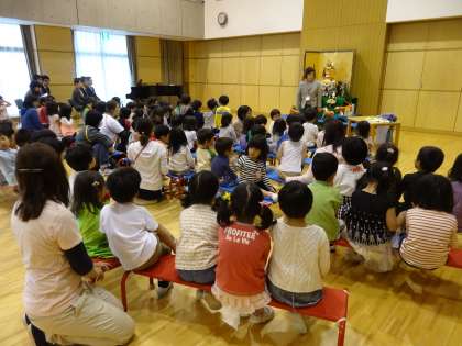 先日の誕生会に続き、全園児で集まるのは2回目です。