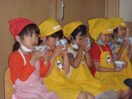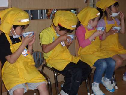 “幼稚園のみんなが食べるお味噌汁の準備を手伝った!”“包丁で切れた!”と人の役に立つ喜びなどを感じていた子どもたちです。