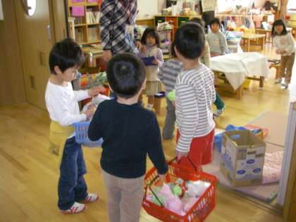 お客様が少ないなと思うと,かごに入れて,各保育室や職員室に売りにもきています。