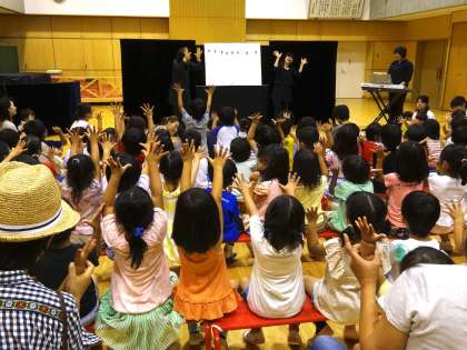 おうちの人と一緒に、そして、在園児の子どもたちも一緒に公演を見ました。