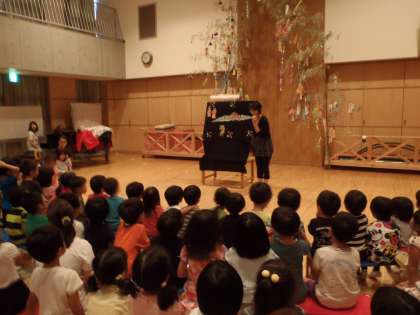 大笹を見ながら歌を歌ったり、ブラックシアターで七夕さまのおはなしを聞いたりしました。