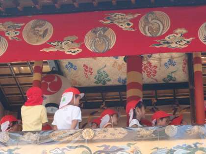 急な階段をのぼると、きらびやかな飾りが見えます。