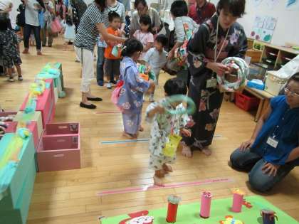 夕涼み会に来た子どもたちはそれぞれのコーナーでの遊びを楽しみました。