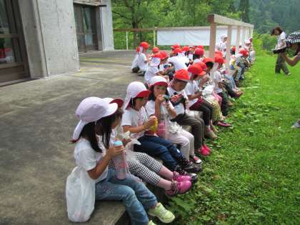 花背山の家で、みんなでおにぎり弁当を食べました。