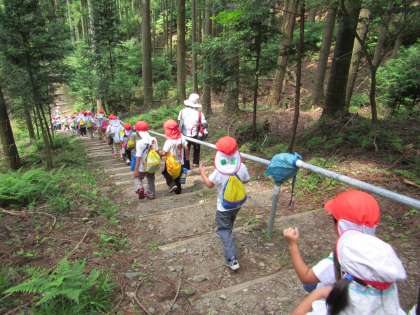 長い階段をのぼったり、おりたり、涼しい木陰の道を歩いたり。