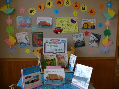 今月の絵本のコーナーは、「乗り物」の絵本の特集です。