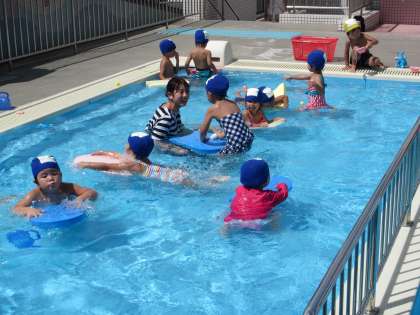 今日の預かり保育ではプール遊びをしました。