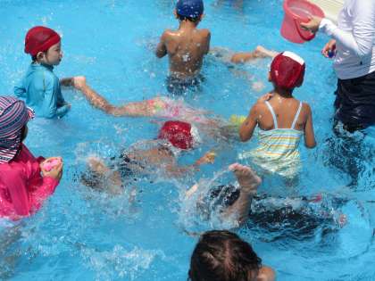 今日の預かり保育はプール遊びでした