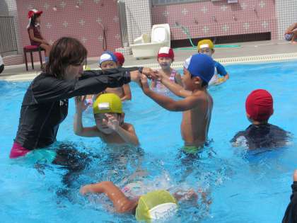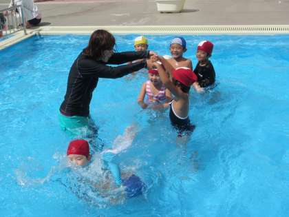 水に顔をつけられるようになり、だんだん長い時間顔をつけ、身体が浮くようになってきた子ども、いろいろな姿が見られます。