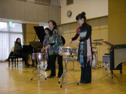 マリンバのお姉さんがバチを4本ももって弾いているのに驚いたり,アメリカンパトロールの曲で小太鼓2台が競演するバチさばきに感心したり,間近に見聞きするのは,やはり心や体に響き渡り,子どもたちにとっていい経験になりました。