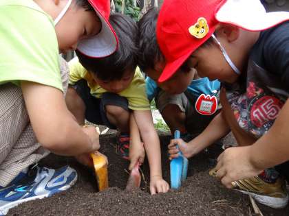 はじめは2人で掘っていたのですが、周りの子どもたちが