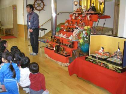 3月3日はひなまつりの日です。子どもたちがみんなおひな様の前に集合しました。