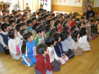 「うれしいひなまつり」の歌を歌った後,ひな人形の話やひなまつりの話などを聞きました。