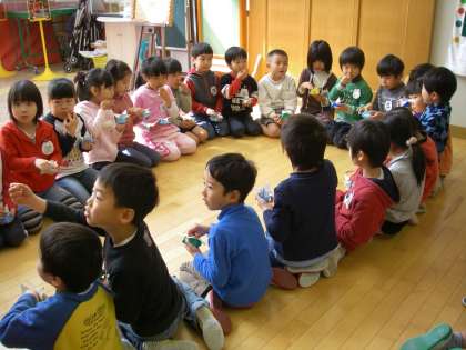 お楽しみでは,クラス毎に輪になって,お雛様と一緒にひなあられをいただいて,おひな祭りをお祝いしました。
