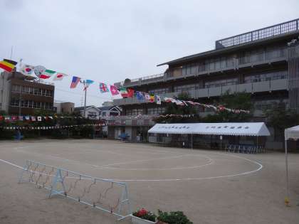 明日の運動会の会場準備が整いました。