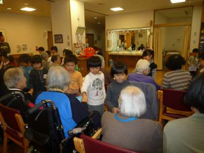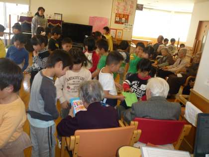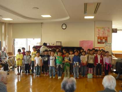 ばら組の時から始まったお隣の特別養護老人ホームへの訪問も、ゆり組の子どもたちにとって今日が最後の日になりました。