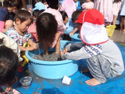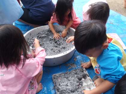 お帰りの時に,新聞粘土の話をすると,「とろとろできもちよかったな〜」