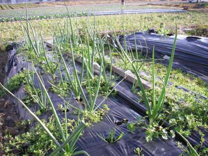 西賀茂農園では,厳しい寒さの中ですが,えんどう豆がすくすくと大きくなってきています。