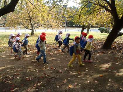 赤や黄色の落ち葉を拾っては見せてくれました。