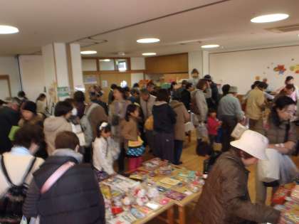 バザー会場のほかに、フリーマーケットのコーナーや、みつば手作り市のコーナーもあり、たくさんの人でにぎわいました。