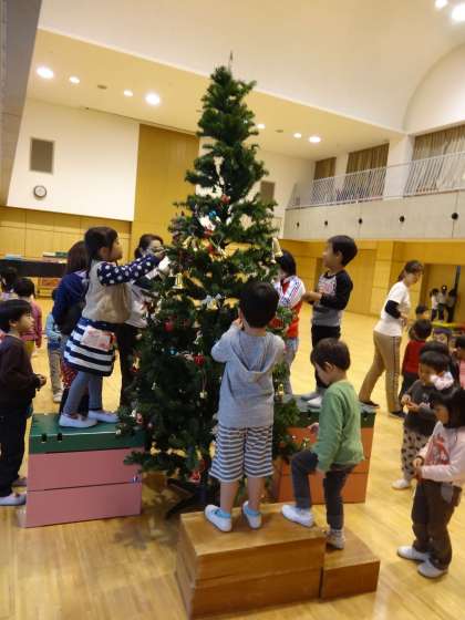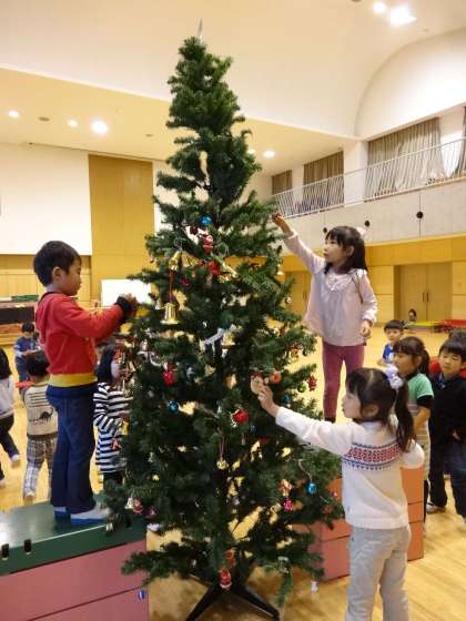 最後に、遊戯室を暗くして、みんなで静かにツリーを見ながら…