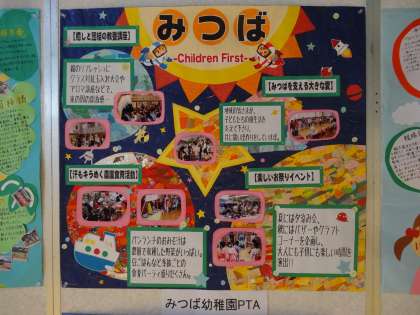 みつば幼稚園PTAの壁新聞、お母さんたちのアイデアと手作りのぬくもりいっぱいつまった壁新聞です。