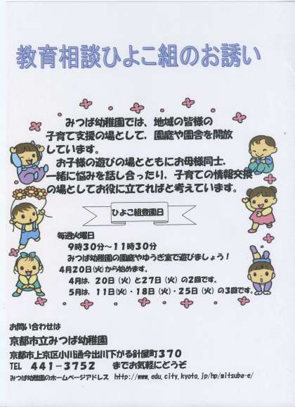 今年度も下記のように教育相談「ひよこ組」を始めます。