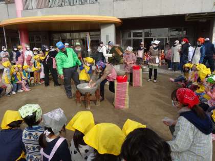 小春日和の良いお天気のもと、みつば幼稚園では餅つき大会を行いました
